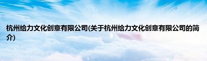 本文关于杭州给力文化创意有限公司的简介就讲解完毕,希望对大家有所帮助。
