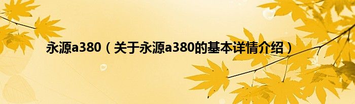 本文关于永源a380的基本详情介绍就讲解完毕,希望对大家有所帮助。