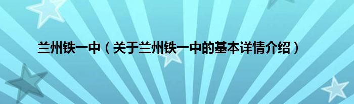 大家好我是小蝌蚪,兰州铁一中,关于兰州铁一中的基本详情介绍很多人还不知道,那么现在让我们一起来看看吧!