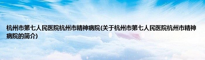 大家好,杭州市第七人民医院杭州市精神病院,关于杭州市第七人民医院杭州市精神病院的简介很多人还不知道,现在让我们一起来看看吧!