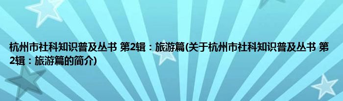 1、 《杭州市社科知识普及丛书(第2辑):旅游篇》是2013年10月杭州出版社出版的图书。
