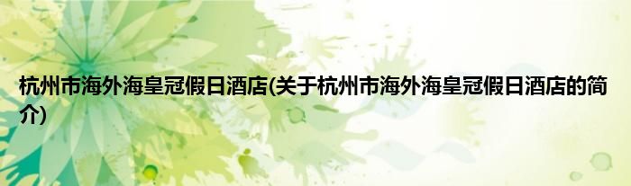 本文关于杭州市海外海皇冠假日酒店的简介就讲解完毕,希望对大家有所帮助。