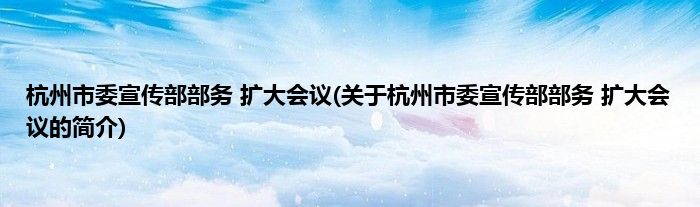 杭州市委宣传部部务扩大会议(关于杭州市委宣传部部务扩大会议的简介)