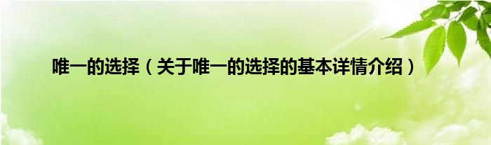 本文关于唯一的选择的基本详情介绍就讲解完毕,希望对大家有所帮助。