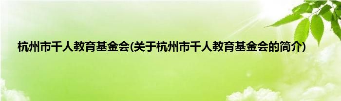 本文关于杭州市千人教育基金会的简介就讲解完毕,希望对大家有所帮助。