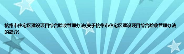 杭州市住宅区建设项目综合验收管理办法(关于杭州市住宅区建设项目综合验收管理办法的简介)