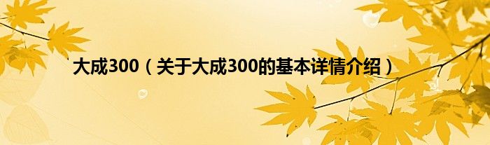 本文关于大成300的基本详情介绍就讲解完毕,希望对大家有所帮助。