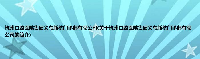 大家好,杭州口腔医院集团义乌新杭门诊部有限公司,关于杭州口腔医院集团义乌新杭门诊部有限公司的简介很多人还不知道,现在让我们一起来看看吧!