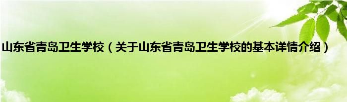本文关于山东省青岛卫生学校的基本详情介绍就讲解完毕,希望对大家有所帮助。