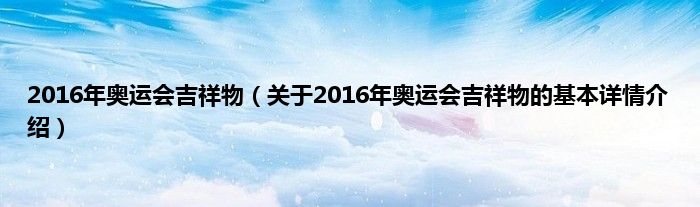 本文关于2016年奥运会吉祥物的基本详情介绍就讲解完毕,希望对大家有所帮助。