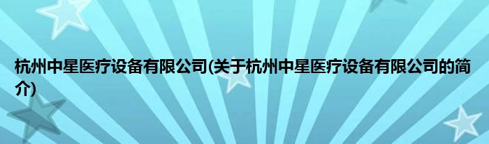本文关于杭州中星医疗设备有限公司的简介就讲解完毕,希望对大家有所帮助。