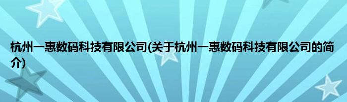 本文关于杭州一惠数码科技有限公司的简介就讲解完毕,希望对大家有所帮助。