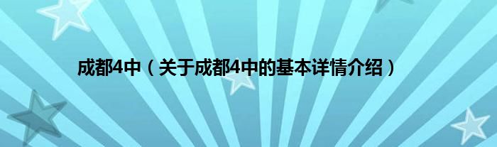 本文关于成都4中的基本详情介绍就讲解完毕,希望对大家有所帮助。