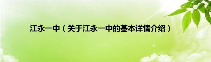本文关于江永一中的基本详情介绍就讲解完毕,希望对大家有所帮助。