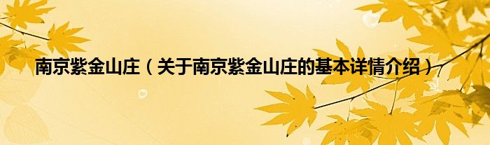 本文关于南京紫金山庄的基本详情介绍就讲解完毕,希望对大家有所帮助。