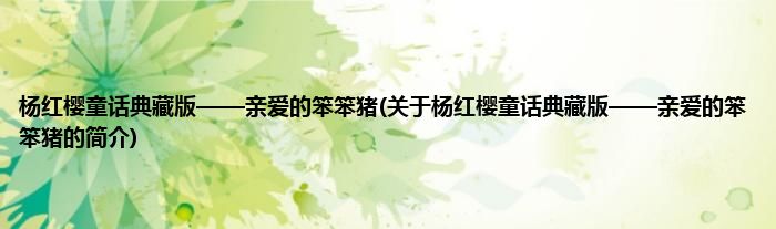 大家好,杨红樱童话典藏版——亲爱的笨笨猪,关于杨红樱童话典藏版——亲爱的笨笨猪的简介很多人还不知道,现在让我们一起来看看吧!