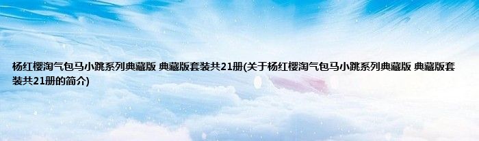 大家好,杨红樱淘气包马小跳系列典藏版 典藏版套装共21册,关于杨红樱淘气包马小跳系列典藏版 典藏版套装共21册的简介很多人还不知道,现在让我们一起来看看吧!