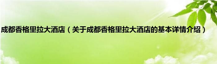 本文关于成都香格里拉大酒店的基本详情介绍就讲解完毕,希望对大家有所帮助。