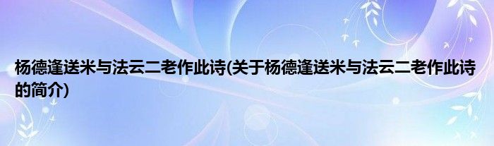 本文关于杨德逢送米与法云二老作此诗的简介就讲解完毕,希望对大家有所帮助。