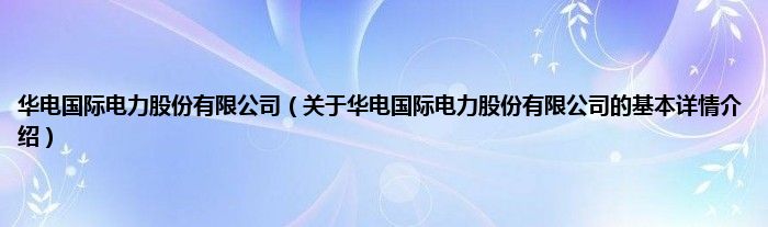 本文关于华电国际电力股份有限公司的基本详情介绍就讲解完毕,希望对大家有所帮助。