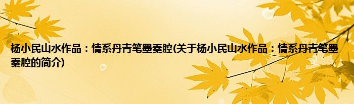 本文关于杨小民山水作品:情系丹青笔墨秦腔的简介就讲解完毕,希望对大家有所帮助。
