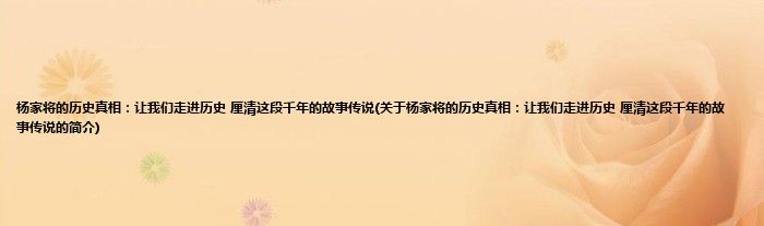 1、 《杨家将的历史真相:让我们走进历史,厘清这段千年的故事传说》是连载于搜狐读书的杂文随笔小说。