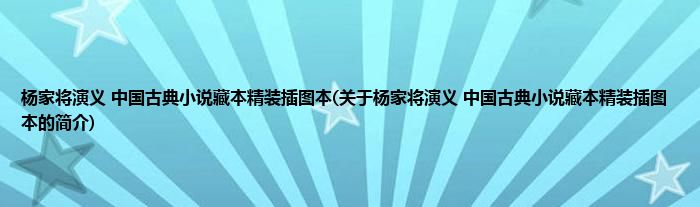 本文关于杨家将演义 中国古典小说藏本精装插图本的简介就讲解完毕,希望对大家有所帮助。