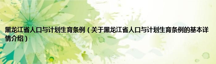 本文关于黑龙江省人口与计划生育条例的基本详情介绍就讲解完毕,希望对大家有所帮助。