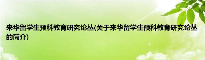本文关于来华留学生预科教育研究论丛的简介就讲解完毕,希望对大家有所帮助。
