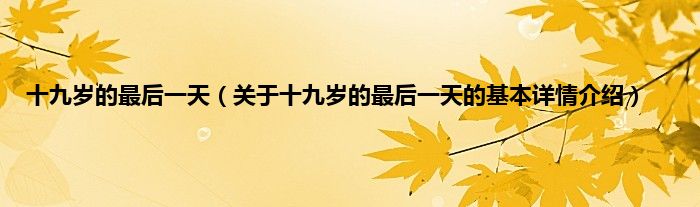 本文关于十九岁的最后一天的基本详情介绍就讲解完毕,希望对大家有所帮助。