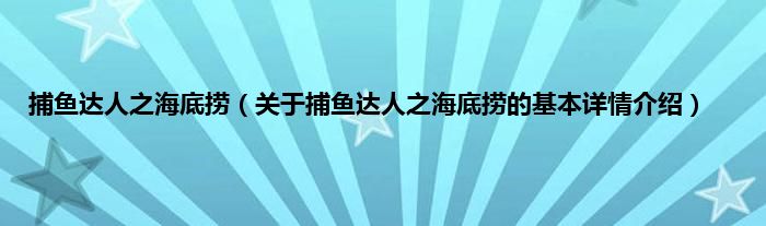 本文关于捕鱼达人之海底捞的基本详情介绍就讲解完毕,希望对大家有所帮助。