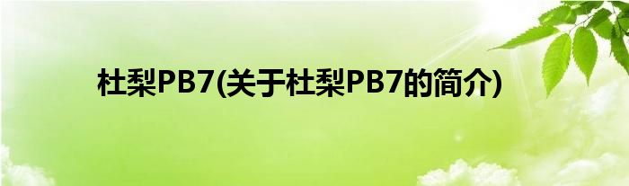 杜梨PB7(关于杜梨PB7的简介)