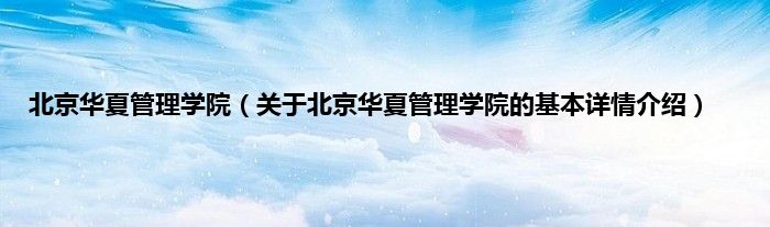 本文关于北京华夏管理学院的基本详情介绍就讲解完毕,希望对大家有所帮助。