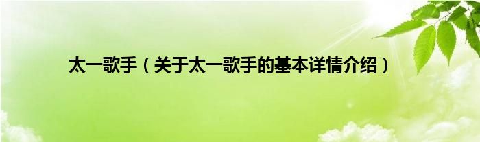本文关于太一歌手的基本详情介绍就讲解完毕,希望对大家有所帮助。