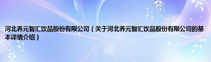 河北养元智汇饮品股份有限公司(关于河北养元智汇饮品股份有限公司的基本详情介绍)