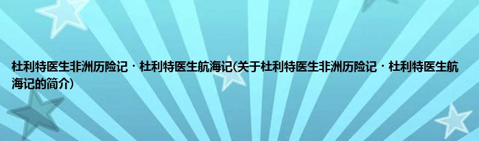 大家好,杜利特医生非洲历险记・杜利特医生航海记,关于杜利特医生非洲历险记・杜利特医生航海记的简介很多人还不知道,现在让我们一起来看看吧!