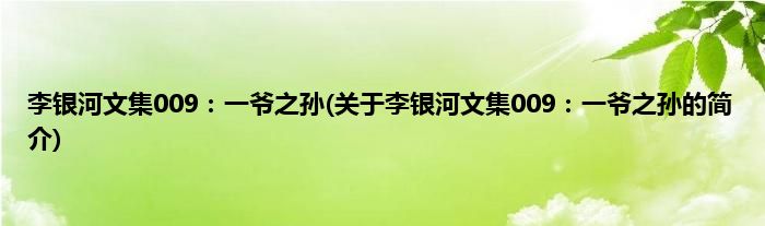 本文关于李银河文集009:一爷之孙的简介就讲解完毕,希望对大家有所帮助。