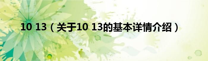 本文关于10 13的基本详情介绍就讲解完毕,希望对大家有所帮助。