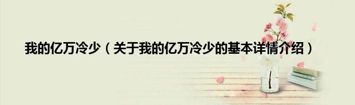 本文关于我的亿万冷少的基本详情介绍就讲解完毕,希望对大家有所帮助。