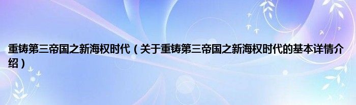 重铸第三帝国之新海权时代(关于重铸第三帝国之新海权时代的基本详情介绍)