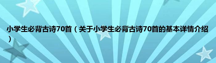 本文关于小学生必背古诗70首的基本详情介绍就讲解完毕,希望对大家有所帮助。