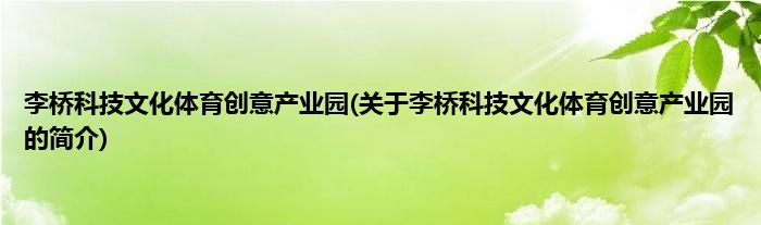 本文关于李桥科技文化体育创意产业园的简介就讲解完毕,希望对大家有所帮助。