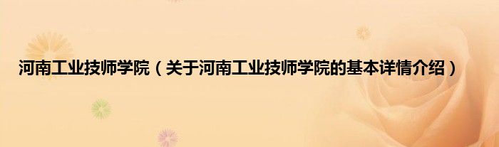本文关于河南工业技师学院的基本详情介绍就讲解完毕,希望对大家有所帮助。