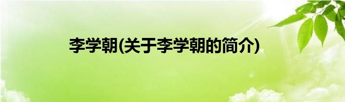 李学朝(关于李学朝的简介)