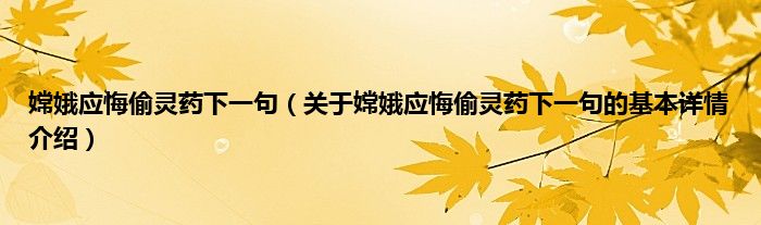 嫦娥应悔偷灵药下一句(关于嫦娥应悔偷灵药下一句的基本详情介绍)