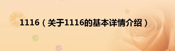 本文关于1116的基本详情介绍就讲解完毕,希望对大家有所帮助。