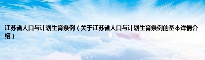 本文关于江苏省人口与计划生育条例的基本详情介绍就讲解完毕,希望对大家有所帮助。