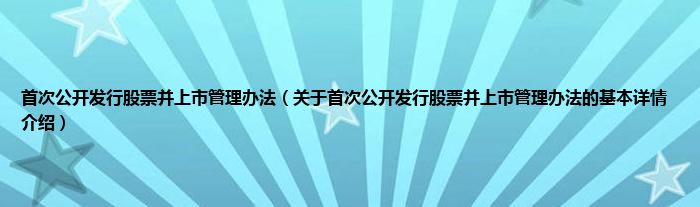 本文关于首次公开发行股票并上市管理办法的基本详情介绍就讲解完毕,希望对大家有所帮助。