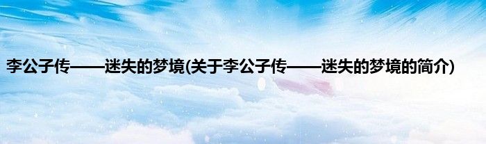 本文关于李公子传——迷失的梦境的简介就讲解完毕,希望对大家有所帮助。