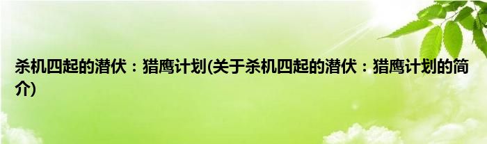 杀机四起的潜伏:猎鹰计划(关于杀机四起的潜伏:猎鹰计划的简介)